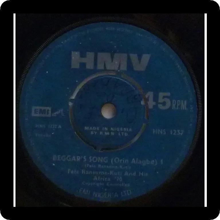 Raw afrofunk winner early single only recording by the Nigerian king. Writings & wear on labels, multiple marks & constant noise, clicks on the third part of A side and all of B side (organ solo, clip