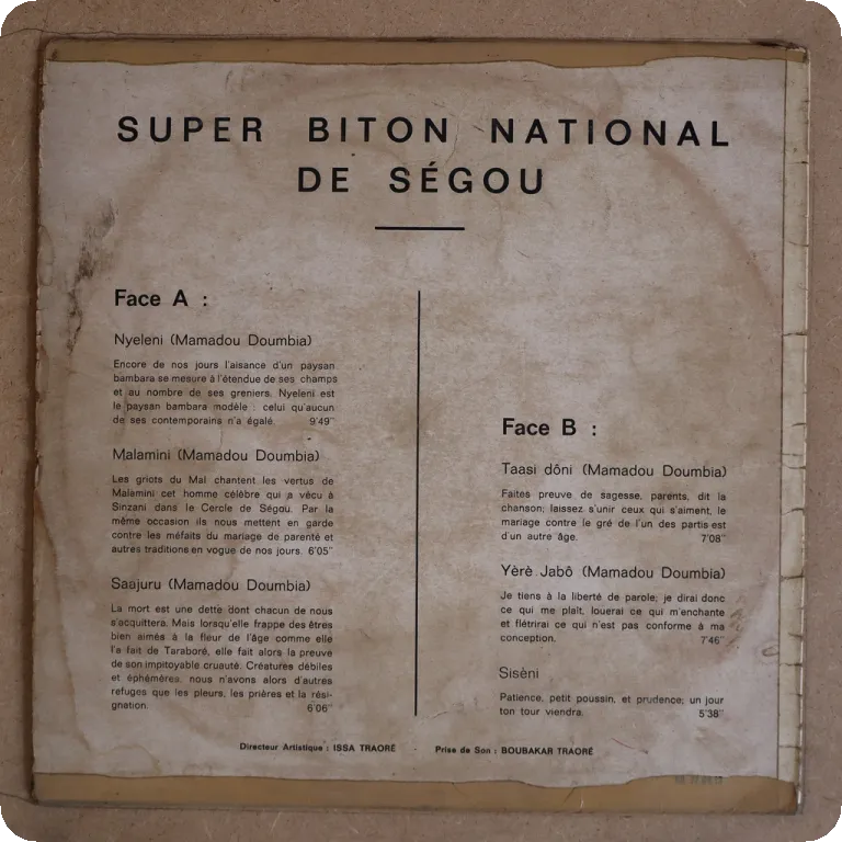 Scarcer soukous double sider recorded by the Kings of Benin for the tiny Northern Benin label, sleeve has aging & dirt, rubber stamp & small peel off on front, writings & sticker on labels, small