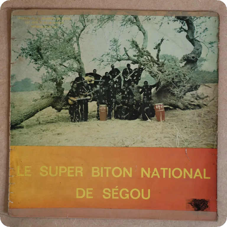 Northern Benin soukous / rumba double sider rarity, sleeve has aging & dirt, narrow bites on bottom spine & mouth, ringwear, beige stains, record has a few clicks on intro to A side otherwise only light to hardly noticeable noise.