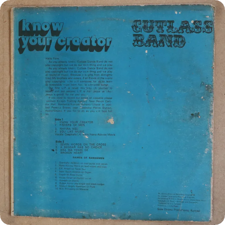 Cutlass band goes rocksteadyin under Jamaican influence on this crossover gospel oriented LP? Sleeve haging & dirt, peel off a stronger dirt along top front, multiple other small peel off, large