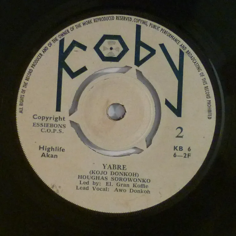 Highlife rarity from Ghana, some dirt on labels, record has constant reasonable to very light noise from marks, VG- to VG.