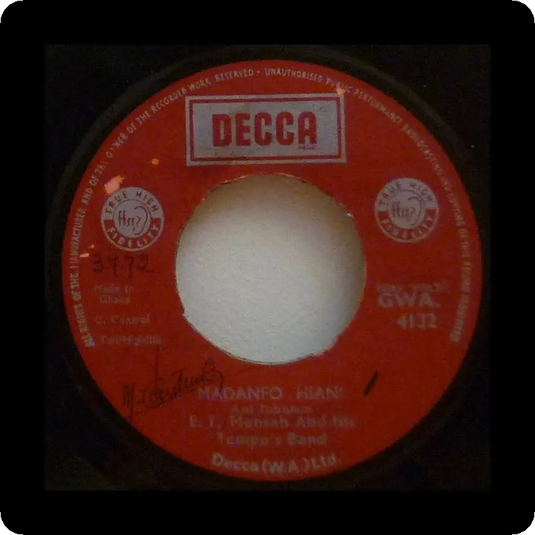Pre independence Highlife double sider 78 rpm only rarity recorded in the early 50's by the Ghana trumpet legend and his group. Writings & some light dirt on labels, record has constant reasonable noise from marks & groove wear, occasionally noticeable clicks from a more visible mark on last part of B side.