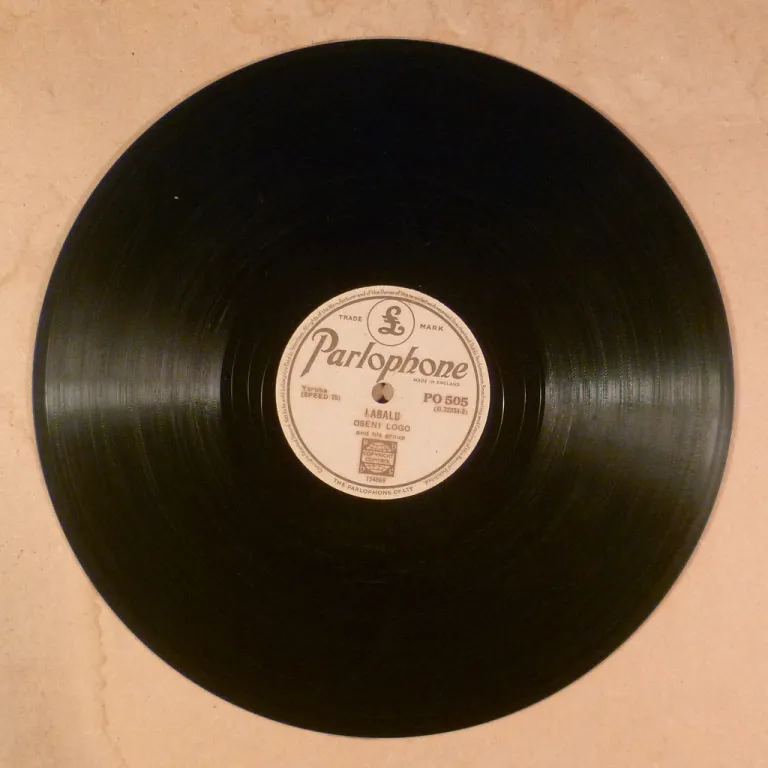 Hardly googleable Nigerian 78rpm w/ male spoken word and a short percussion part at the end of each track, too short to mention at end of A side, while B side's part is available on clip 3 below. light wear & dirt on labels. Record is V-, really clean visually w/ pressing noise & very few marks, but warp though it plays fine on our audio technica 120