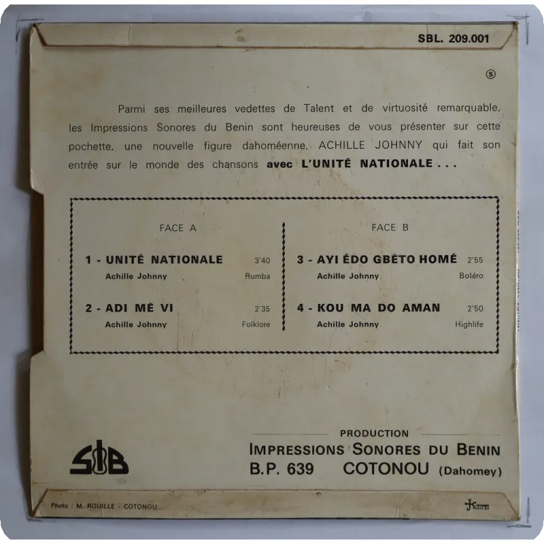 7inch (SP) | Cover / Rec > > VG- / VG- | Impressions sonores du Benin | France