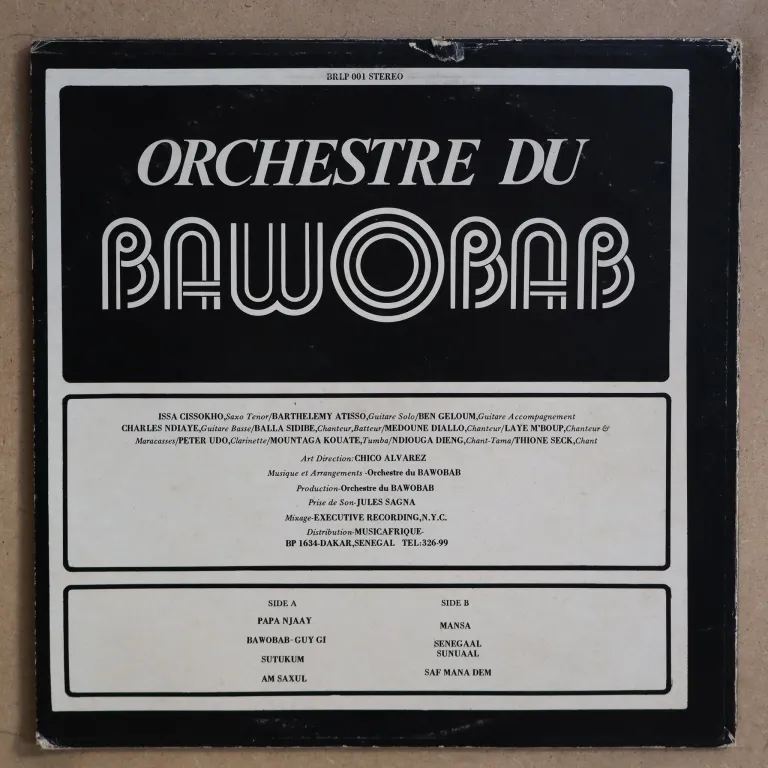 First volume released by Baobab on the BUUR catalogue, w/ a deep afro mandingo tune, also check Saf mana dem, the afrolatin spiced Papa njaay & Am saxul. Sleeve has some aging, strong wear on spine, tear on top back, record plays w/ light occasional to hardly noticeable noise from few light marks, VG to EX depending on parts.