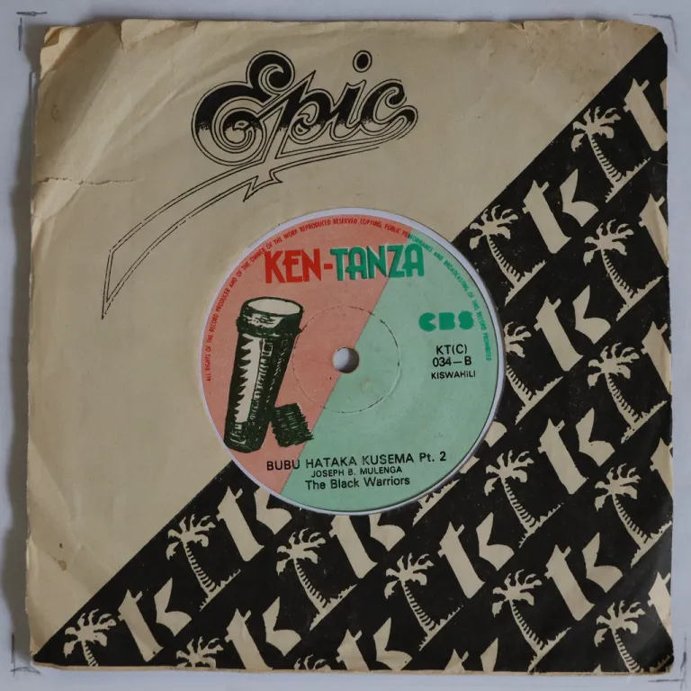 Consistent soukous tune as recorded by one of Tanzania's best late 70's groups, taken from (or later released on) their same title LP. Aging & dirt on generic manufacturer sleeve, split on a whole seam & 1" horizontal tear there as well, creases. Inaudible opaque pressing patch on edge to B side, very minor very occasional noise.