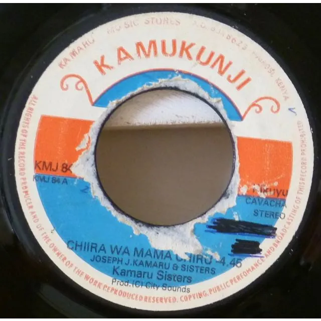 Afro folk guitar & voices double sider sung in Kikuyu w/ female chorus. Writings & rubber stamps on labels. Record plays solid VG++ despite some surface marks.