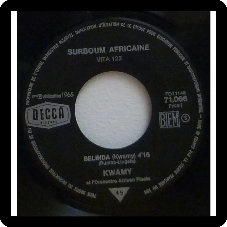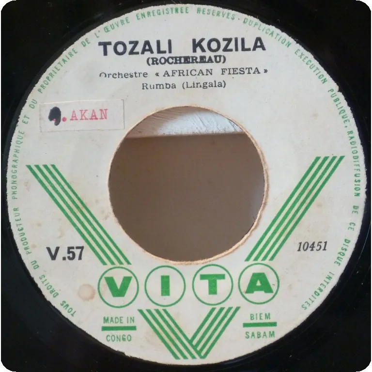 A Cuban influenced son double sider rarity out of Congo recorded by the legends, sticker & light dirt on labels, record has numerous marks & constant reasonable noise.