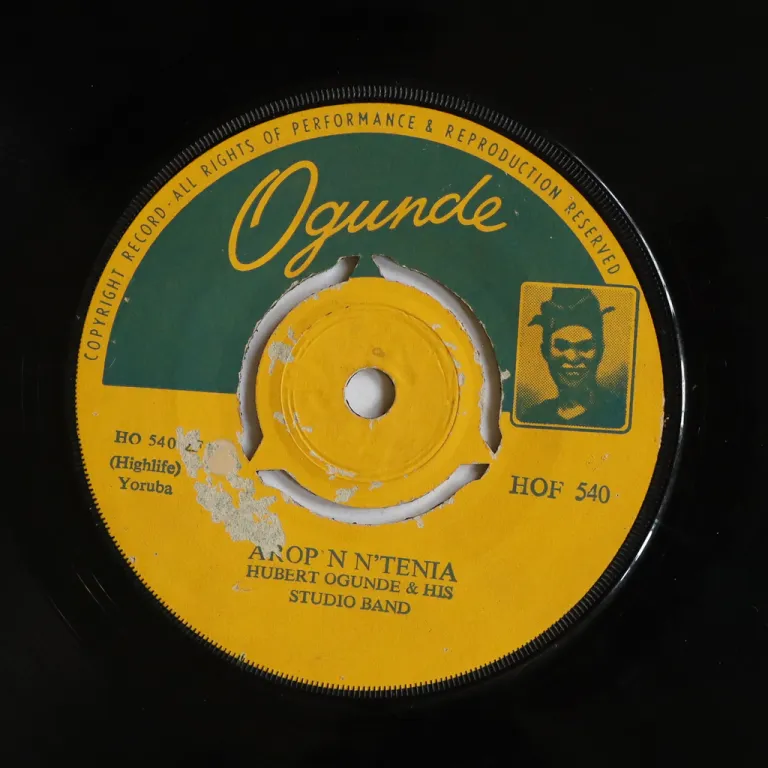Top notch highlife mega rare release from Nigeria w/ horn solo & Ogunde's lovely lady chorus. Peel off & small stains on labels. Ruff press with hiss & a bit of a noisy pressing bubble on A side (cip 1), ranges from solid VG- to solid VG/VG+