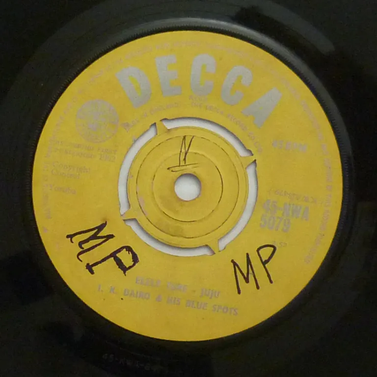 Scarce early IK Dairo single only Nigerian juju double sider. Writings & dirt on labels, opaque faulty press w/ pressing hiss & concave on B side, convex on A side.