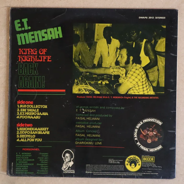 Early highlife & calypso masterpiece by the Ghana trumpet king. Sleeve has some aging & dirt, small writings on back, peeling of the upper plastic sheet along mouth, record has light to hardly