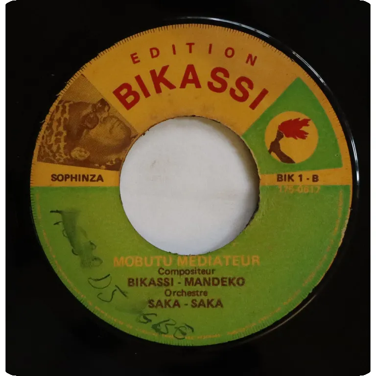 Single only pro Mobutu regime Congolese rumba soukous double sider, with a kick off on part 2 of side A. writings on labels, record has light marks & light to hardly noticeable noise, weak VG to VG/VG