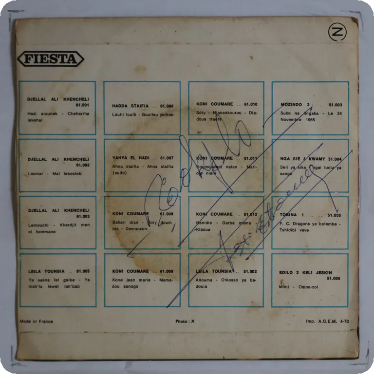Rumba double sider by the Congo Brazzaville legends. Some wear on cover, shop stamp & ringwear on back, warp on corners, record is solid VG- to VG w/ light to hardly noticeable noise