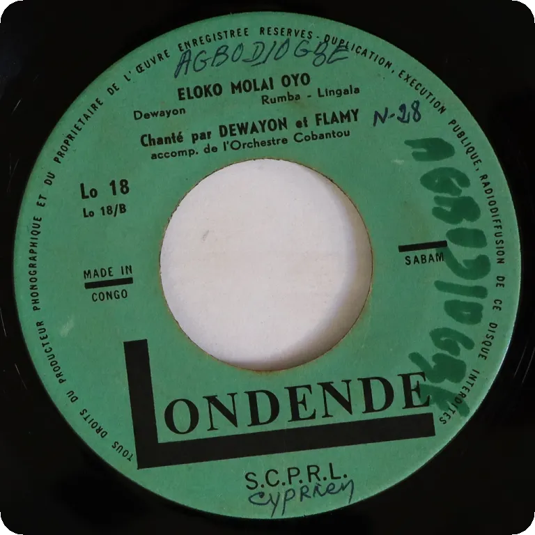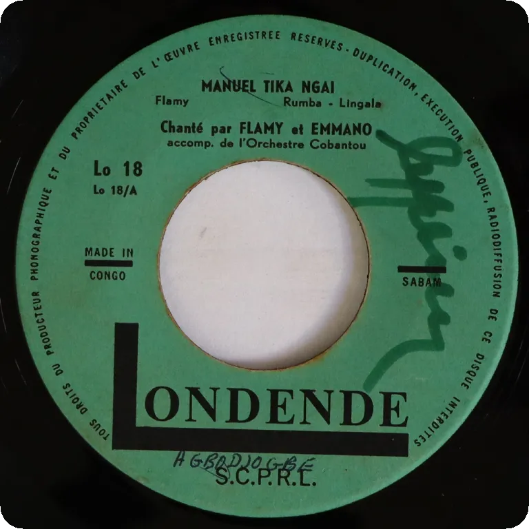 2 rumbas recorded by this renowned Cameroon singer / songwriter for this ultra rare single only release. Writings on labels, record has marks & constant light to very light noise from marks.