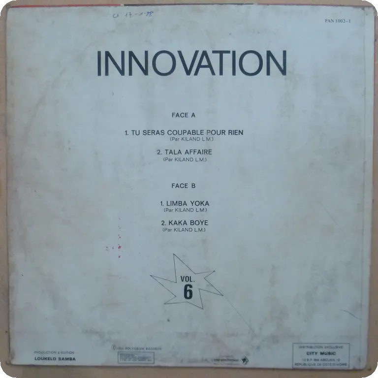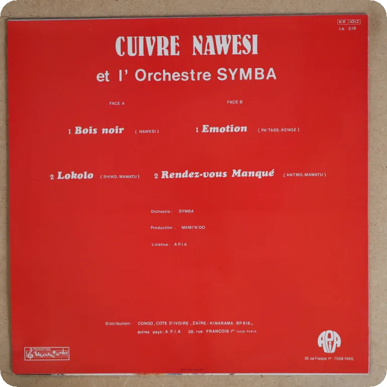 Congolese soukous & hypnotic rumba as recorded in Abidjan by some of of Congo's best artists including Nyboma, Dany [Dally] Kimoko. Some dirt wear & aging on cover, small air bubble underneath upper