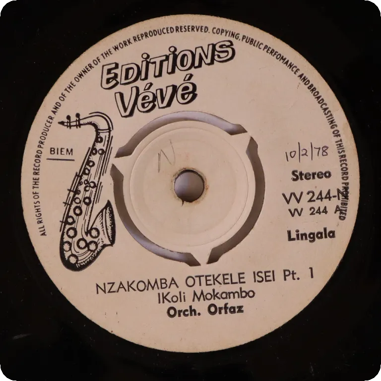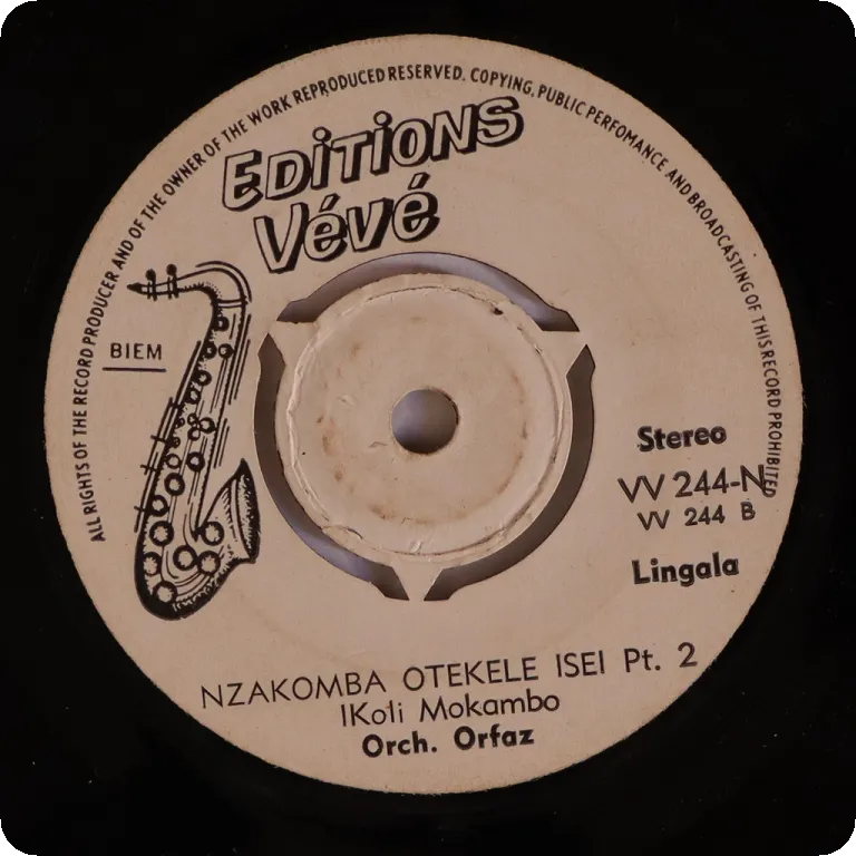 Mid tempo soukous rarity from Congo. Some dirt on labels. Reasonable to hardly noticeable noise from marks, varies from VG- to VG+ depending on part.