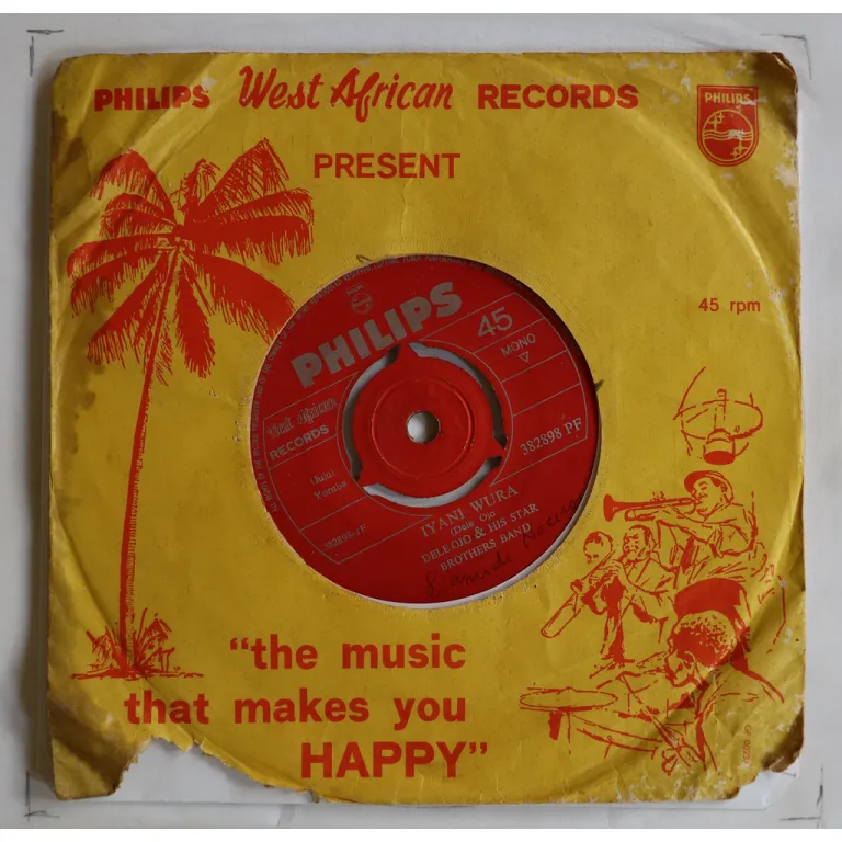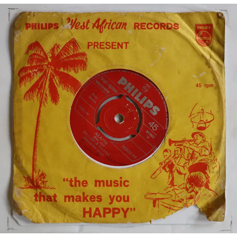 Juju double sider by one of Nigeria's yoruba legends ! Sleeve w/ aging/dirt, large bites on bottom, creases, beige water damage along one of the edges, writings on labels. Record has constant strong pressing hiss though marks are not the real issue here.