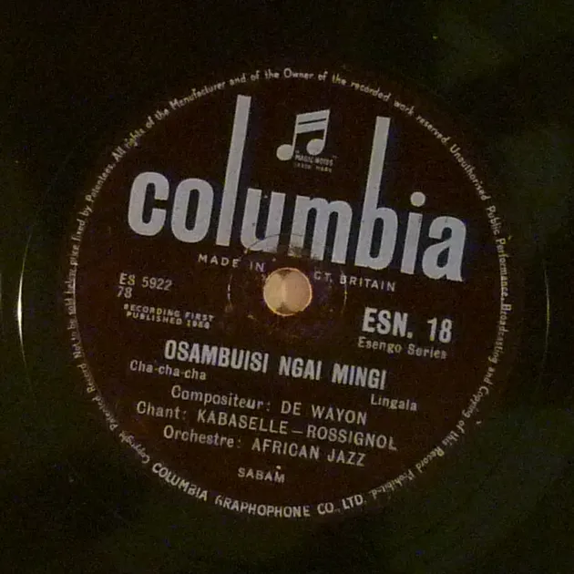 Cha cha cha Congolese style double sider mega rare release as recorded by the Congo kings of rumba for the legendary Esengo label. Record has some marks & very reasonable noise, a chip on edge reaching the first groove but plays nicely.