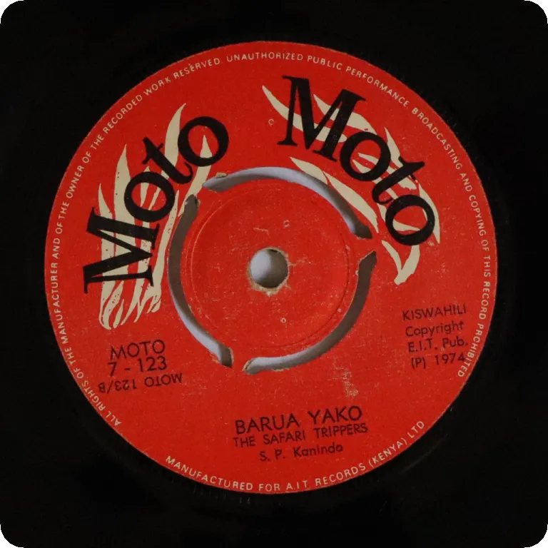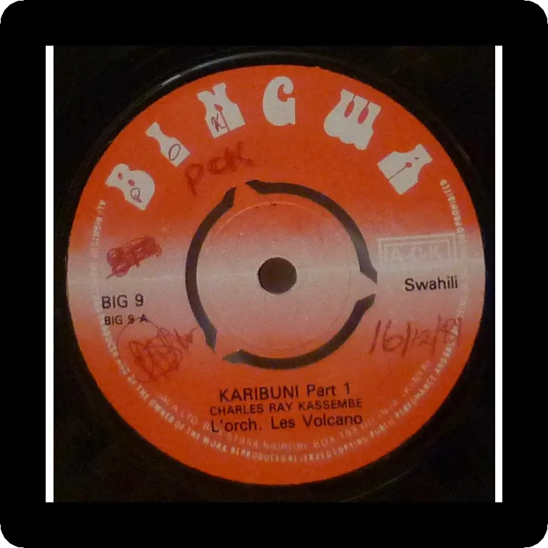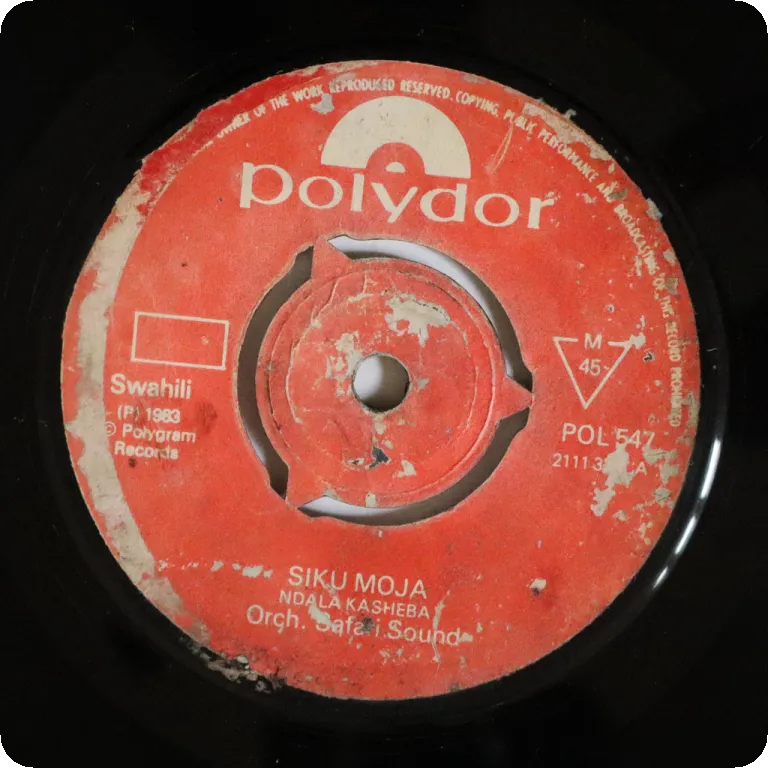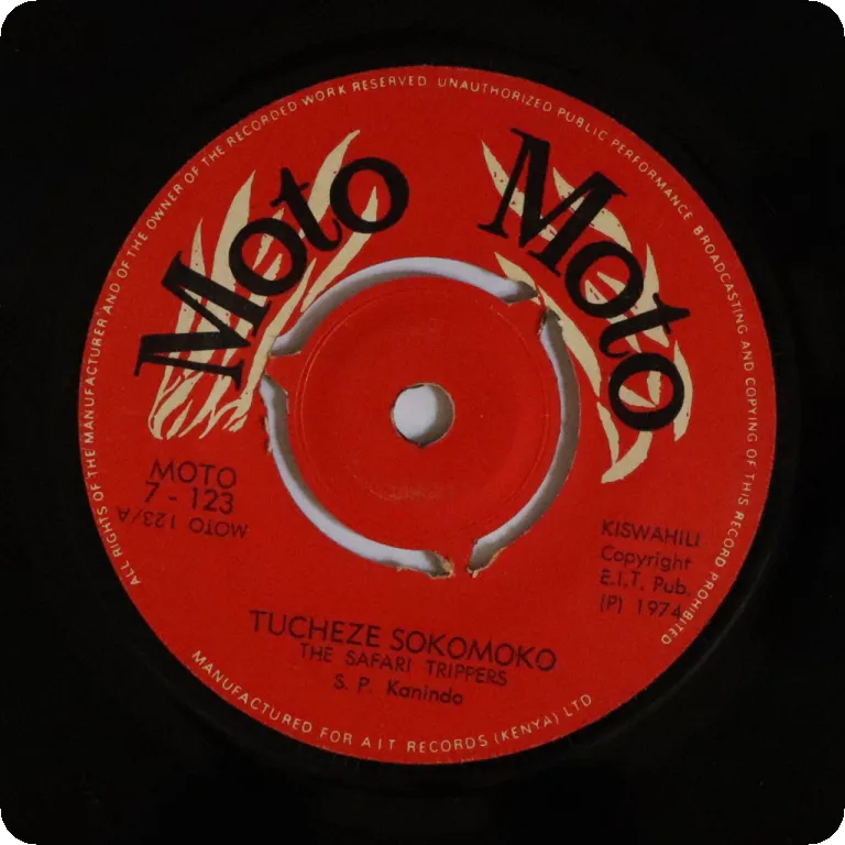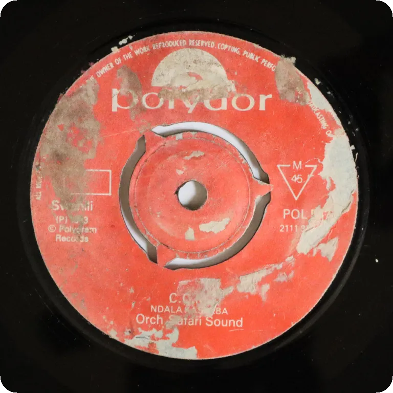 Ungoogleable Kenya or Tanzania swinging soukous winner tune sung in swahili. Wear & paper stuck on labels & large peel off & dirt on B side label, record has marks, noise in parts, particularly on B side (clip 2)