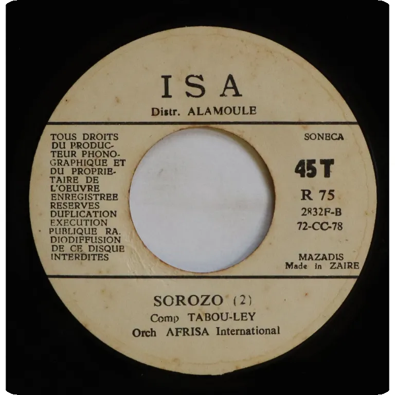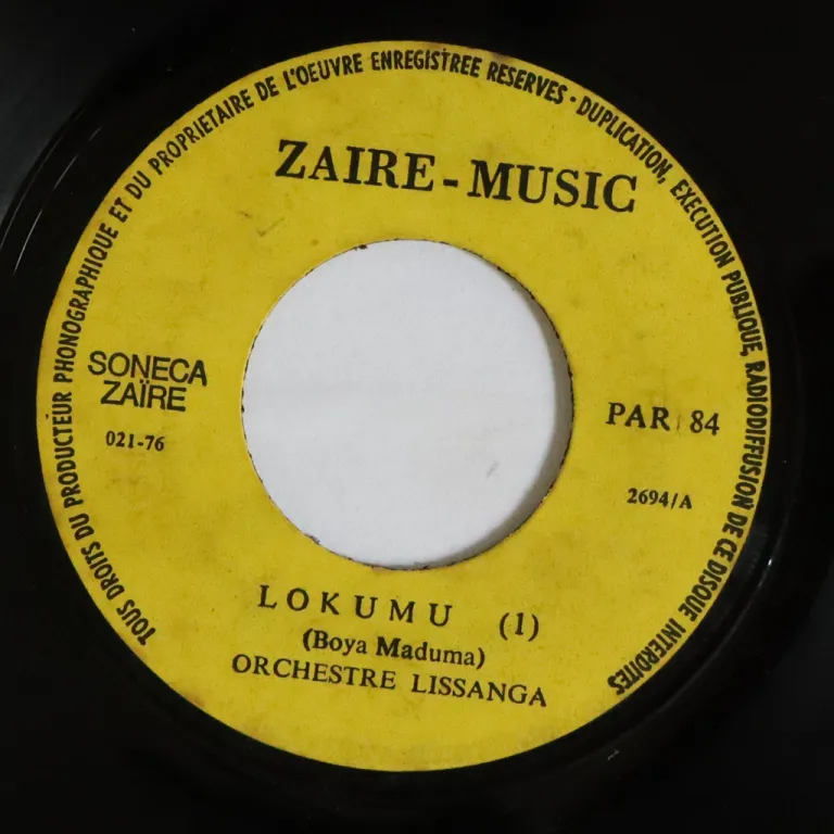 Mid tempo soukous rarity from Congo. Some dirt on labels. Reasonable to hardly noticeable noise from marks, varies from VG- to VG+ depending on part.