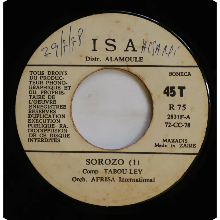 Mid tempo soukous winnr by one of Congo's leading groups. Writings & dirt on labels, record has light occasional to hardly any noise, ranges from weak VG to VG+ depending on part.