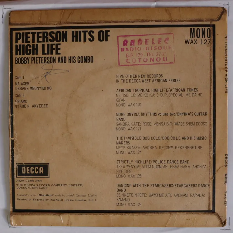 Horn highlife impossible to find release out of Ghana. Never sold on ebay nor discogs. Sleeve has some aging & dirt, shop stamp & writings on back, dirt & writings on labels. Record has constant