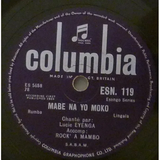 Early Congolese rumba & chachacha on scarce 78 rpm on Esengo Columbia UK, record plays with light noise from pressing & few thin marks, very nice shape.