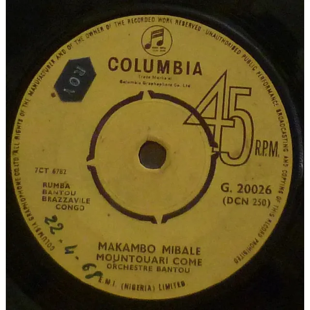 Rumba double sider composed by Moutouari Come and surely a super rare title in this Congolese group's discography. Stickers & writings on labels, record plays with strong to reasonable noise & occasional clicks from numerous marks.