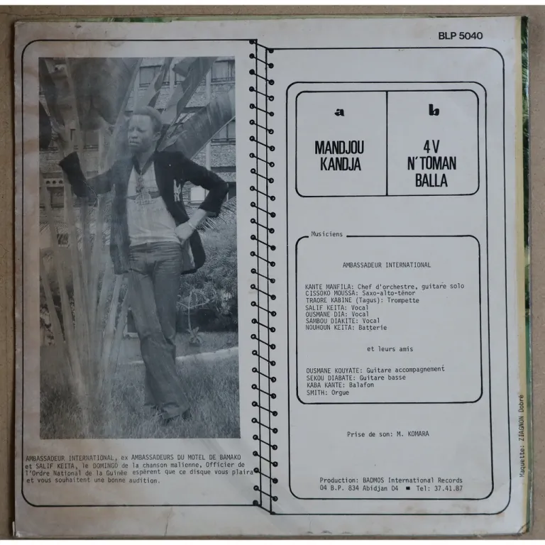Consistent manding LP that features a solid funky afro pop/afrobeat tune w/ organ & sax solos, backing by les Ambassadeurs. Also features a manding track that reminds the RAIL BAND.Dirt on cover, shop