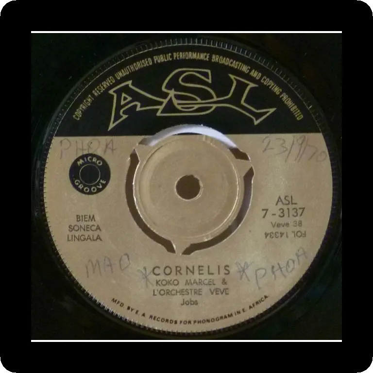 Kenya only Congolese rumba rarity sung in Lingala. Light to hardly noticeable noise from marks.