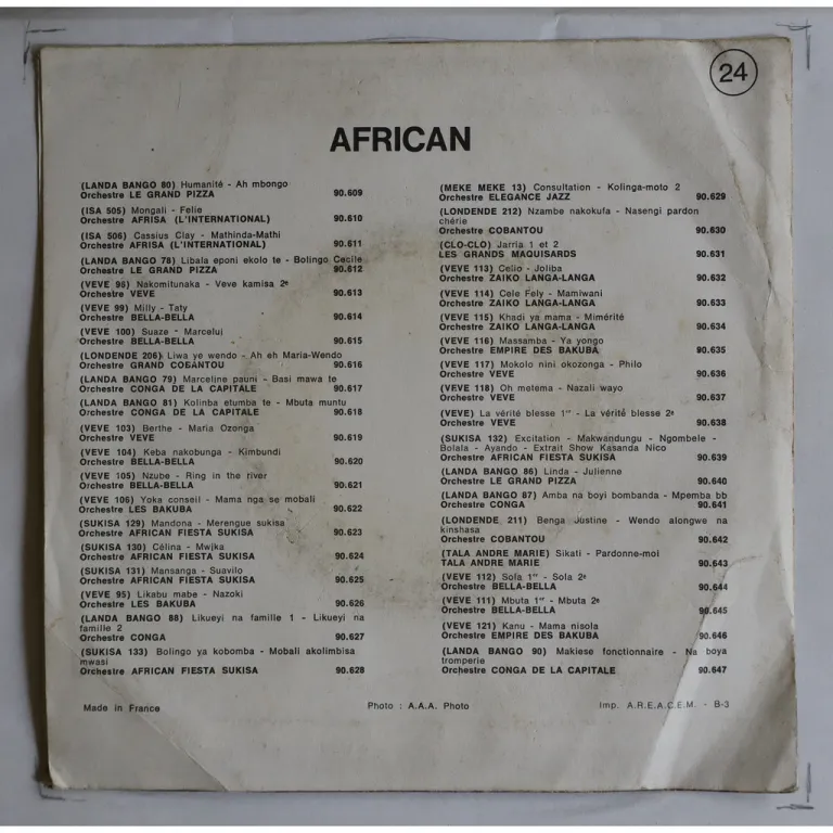 Tropical dancefloor Kenya only lingala soukous tune, strong wear & peel off on labels, record has marks & very reasonable to hardly noticeable noise, ranges from VG- to VG/VG+