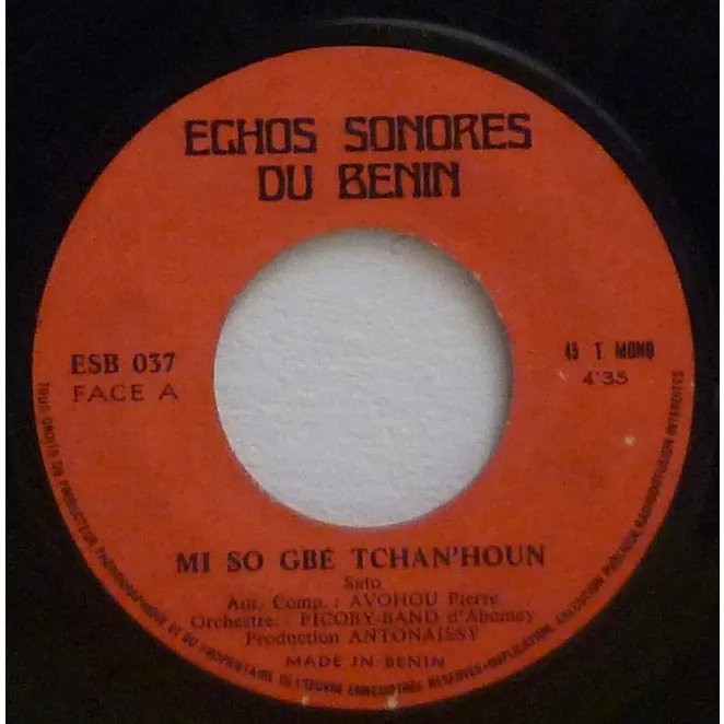 Killer hypnotic afro double sider feat. Sagbohan Danialou on lead vocals on B side and very likely young Stanislas Tohon on A side. Writings on labels, record has constant noise & pops from numerous