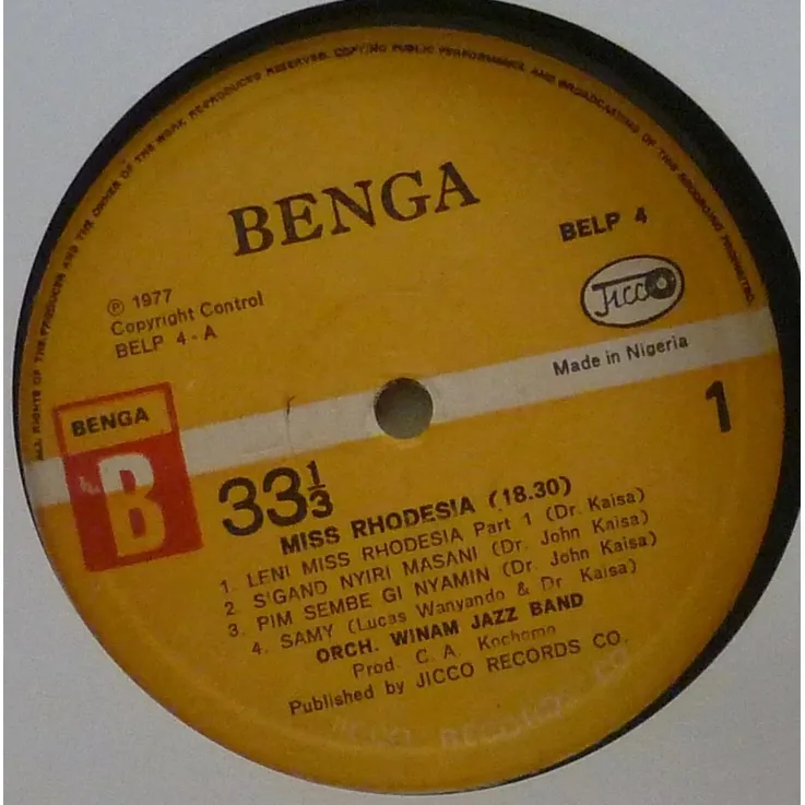 Benga dancefloor winners & multiple uptempo frantic benga tracks as recorded by one of Kenya's leading 70's bands on this super rare release. Sleeve is missing, writings on labels, record has constant reasonable to very reasonable noise, numerous marks.