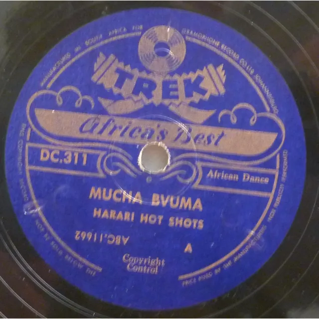 Instrumental sax jive double sider out of Zimbabwe. Record has greyish pressing stains & some storage marks, light noise from both marks & pressing, V- to V.