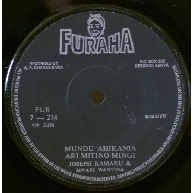 Male / female vocal duet w/ guitar as recorded by the Kenyan kikuyu legend, B side has a roosty folk tune w/ guitar & sticks & spoken word male monologue on intro. Minor noise from thin marks.