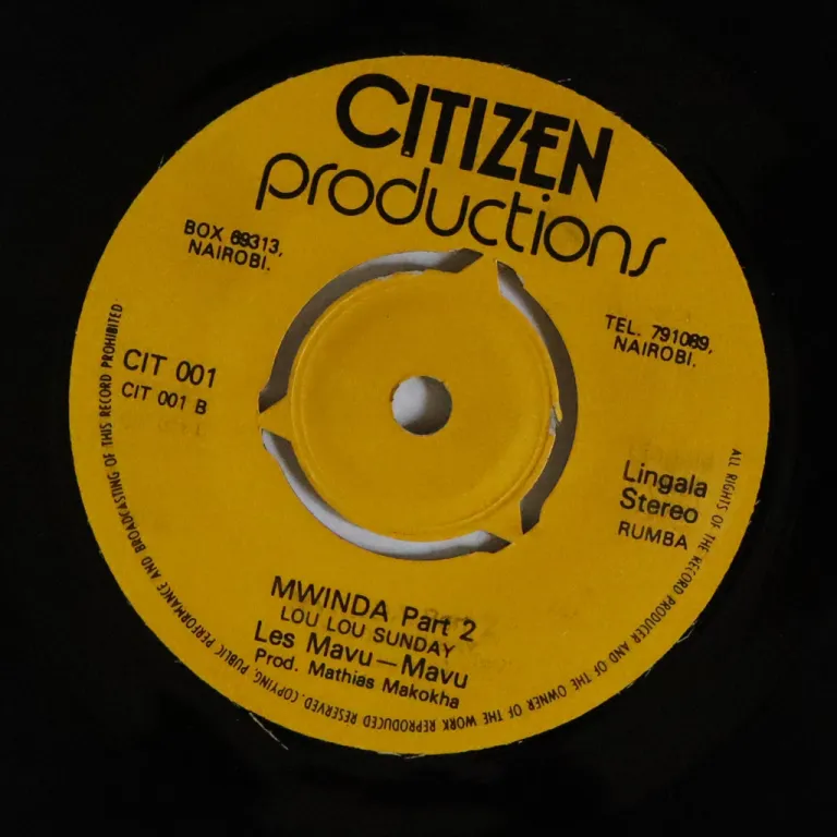 Apparently Kenya only ungoogleable Lingala down tempo soukous winner with whirling rhythm guitar work & saxophone on part 2. Record is VG+ w/ very occasional very light noise
