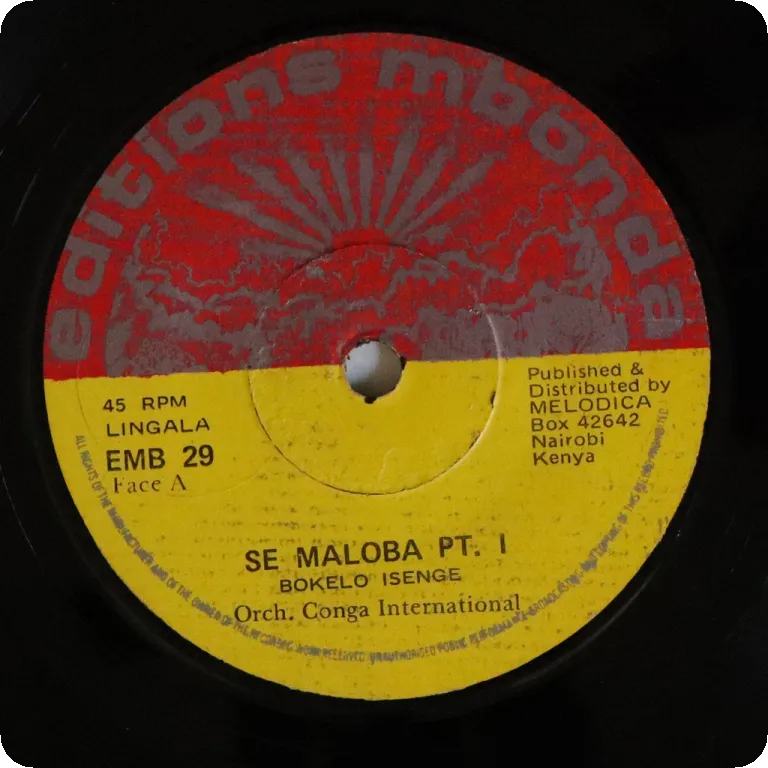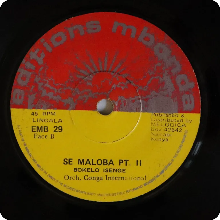 Single only Congolese soukous recorded by the Nairobi based Congolese group led by Bokelo. Ruff sound. Plays with light to hardly noticeable noise, solid VG- to VG/VG+