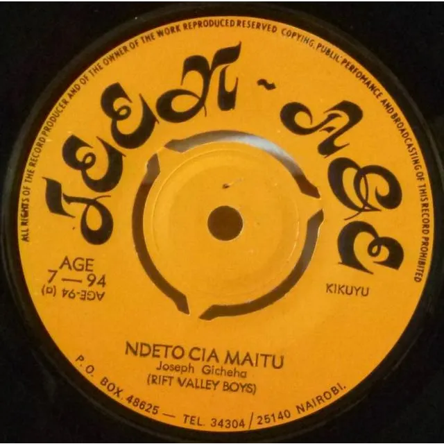 Afro folk guitar & voices double sider sung in Kikuyu w/ female chorus. Writings & rubber stamps on labels. Record plays solid VG++ despite some surface marks.