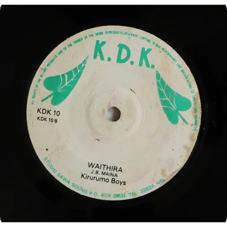 Laid back Kenyan rumba double sider rarity sung in Kikuyu. Writings on labels. Record plays VG- w/ noise from numerous marks.