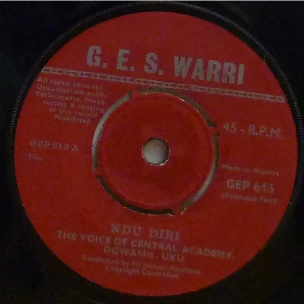 ungoogleable gospel choir rarity sung in Ibo language. Writings & light wear on labels. Record is VG- with constant reasonable noise from numerous marks.