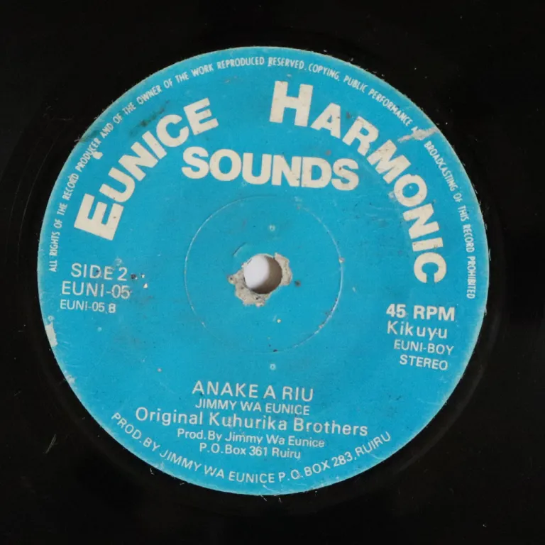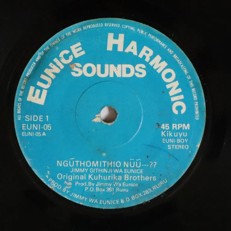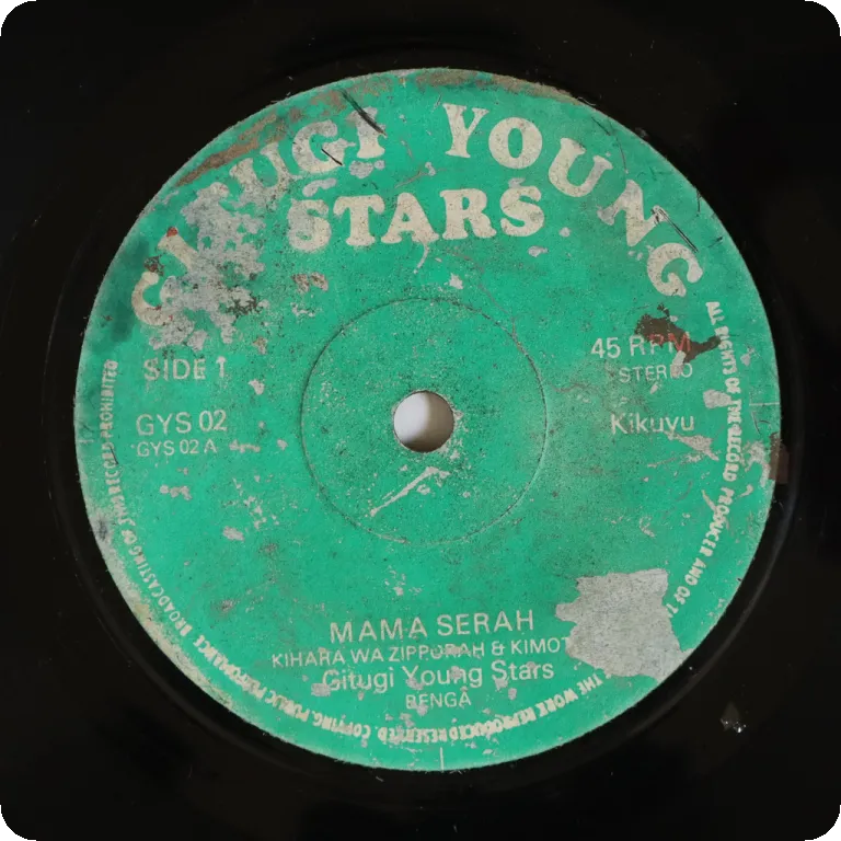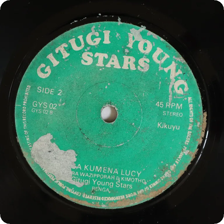 Hardly googleable Kenya benga sung in kikuyu language. Dirt & mini peel off on labels. Record is VG- to VG, reasonable to hardly noticeable noise from marks