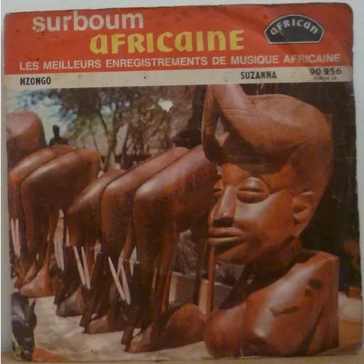 Rumba on top out of Congo and impossible to find on original 7" format. Sleeve w/ aging & dirt, writings on back & labels, mini peel off on front, light grey water damage along mouth, sticker on label. Record plays w/ constant light noise from marks