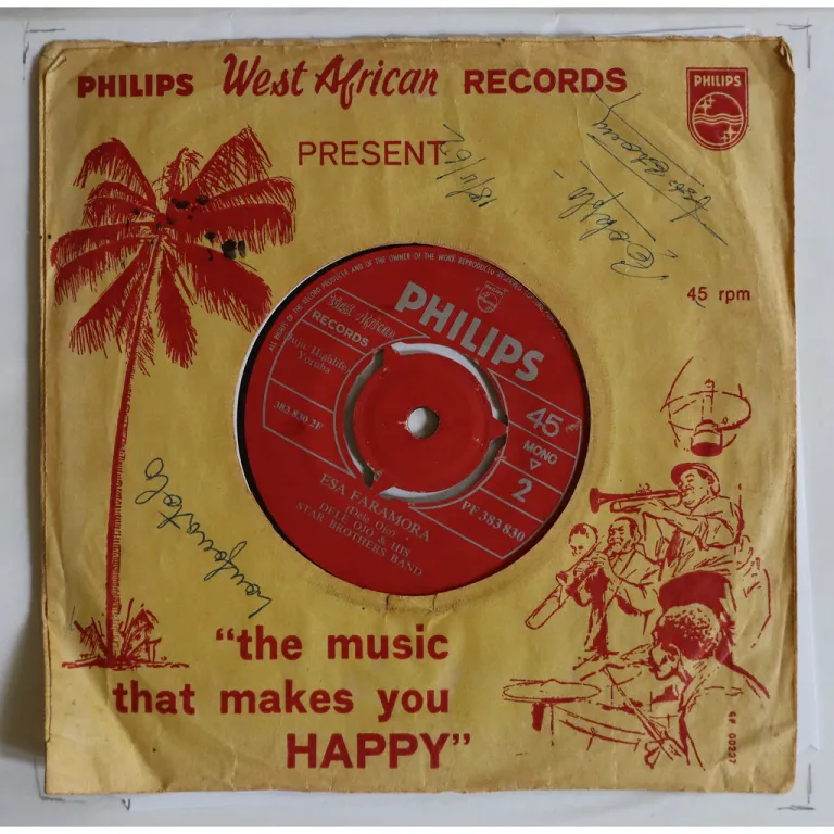 Nigerian juju double sider by one of the country's sought after artists, later compiled on his 10" Philips album. Sleeve has some aging & dirt, light creases, small tear and bite on center hole, shop