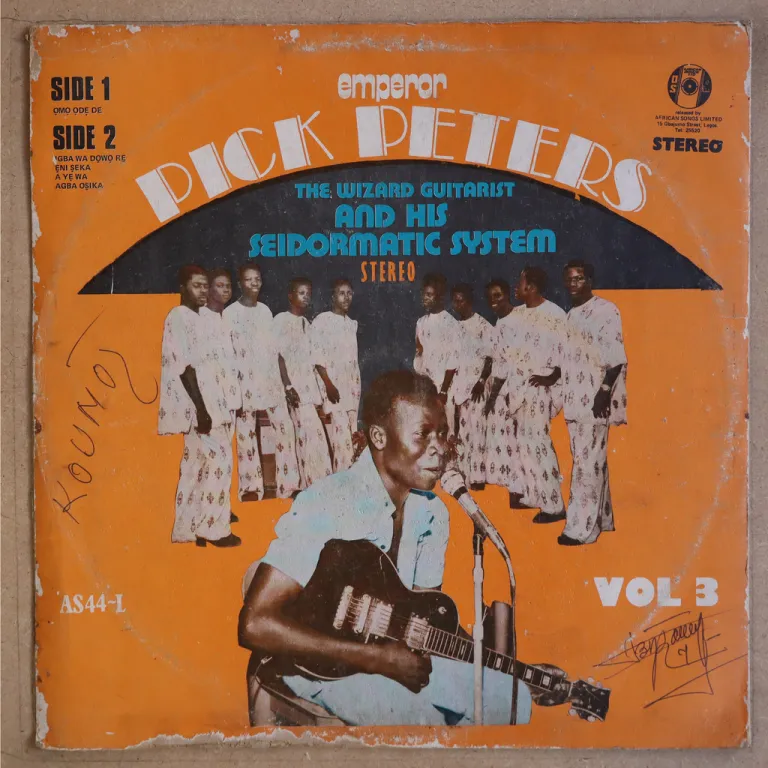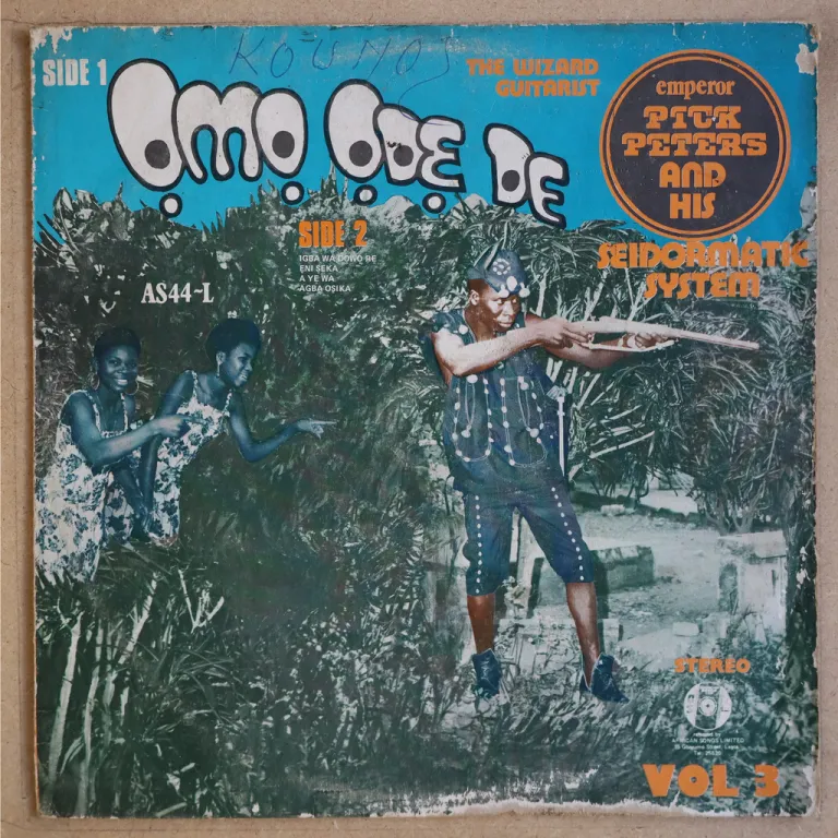Nigerian juju rarity by one of the masters of the genre. Sleeve has dirt wear & aging, some ringwear, small pieces of paper stuck on bottom front & back, record plays with light constant noise from