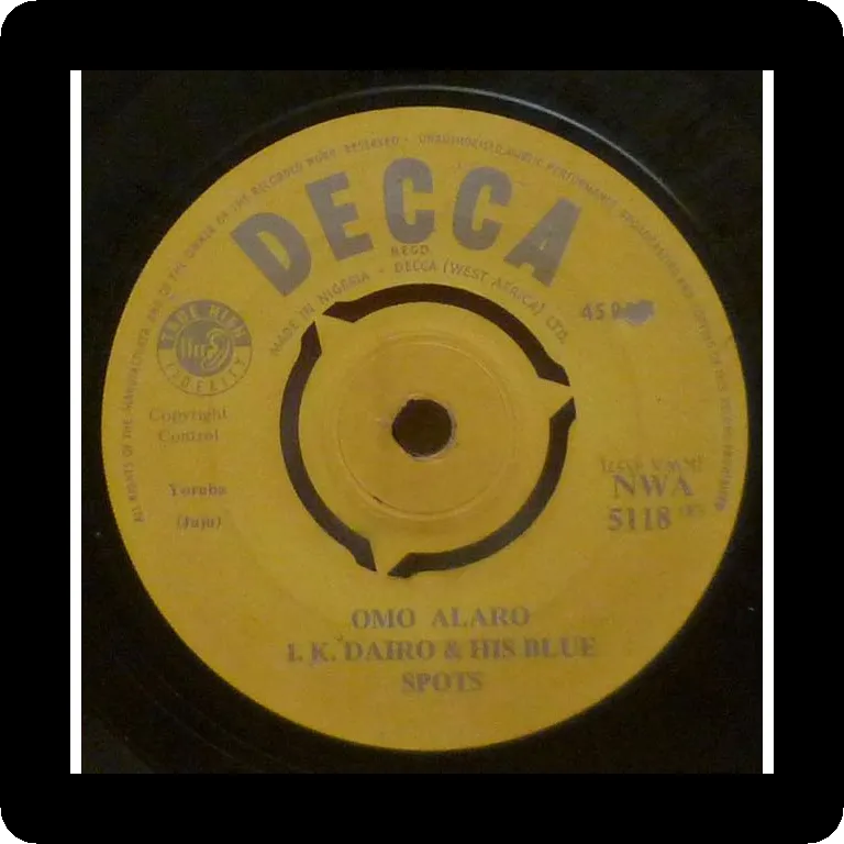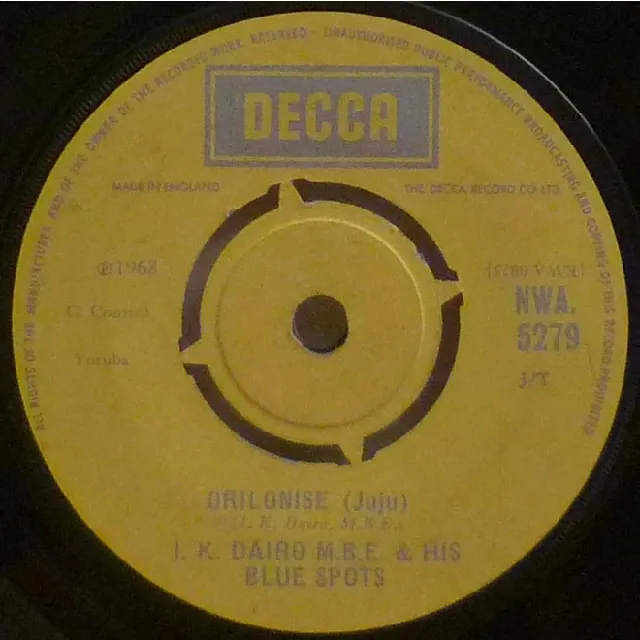 Scarce early IK Dairo single only Nigerian juju double sider. Writings & dirt on labels, opaque faulty press w/ pressing hiss & concave on B side, convex on A side.