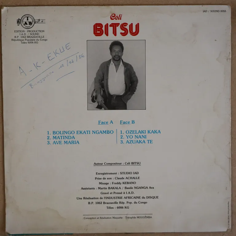 Mid & down tempo soukous out of Congo by one of the leaders of the genre. Oiriginal Congo press. Minor wear on cover but misprint fading of the colour. Dirt on labels. Vinyl in top shape.