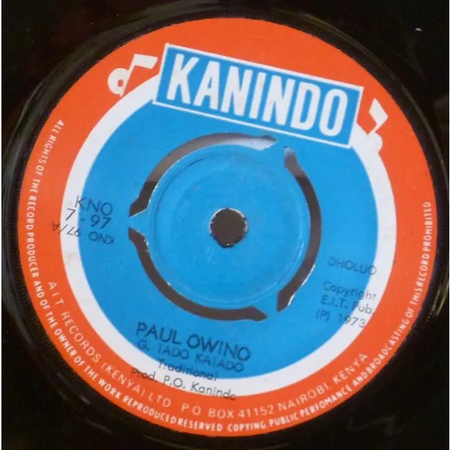 Traditional dholuo folk music from Kenya w/ male leading vocalist & male backing vocals + drums, bells & string instrument. Peel off on B side label. Record plays SOLID VG- to VG++, minor noise from marks to no noise.