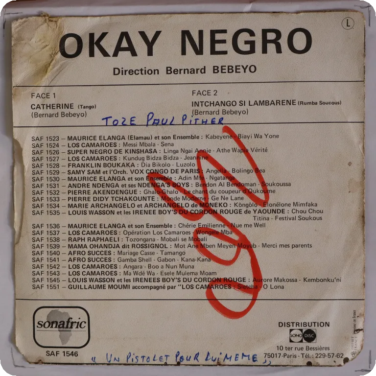 A Congolese style rumba soukous and a tango both with rocky raw electric guitar work on this Cameroon rarity apparently never sold neither on discogs nor ebay. Sleve has aging & wear, small and large