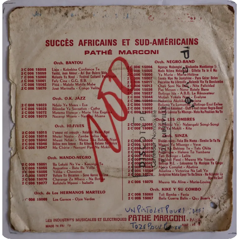 Mega rare Congolese rumba double sider by one of the contry's leading groups. Never sold neither on discogs nor on ebay. Dirt & writings on labels, constant reasonable to light noise from numerous marks.