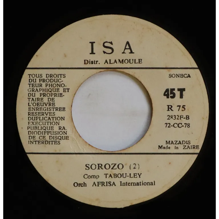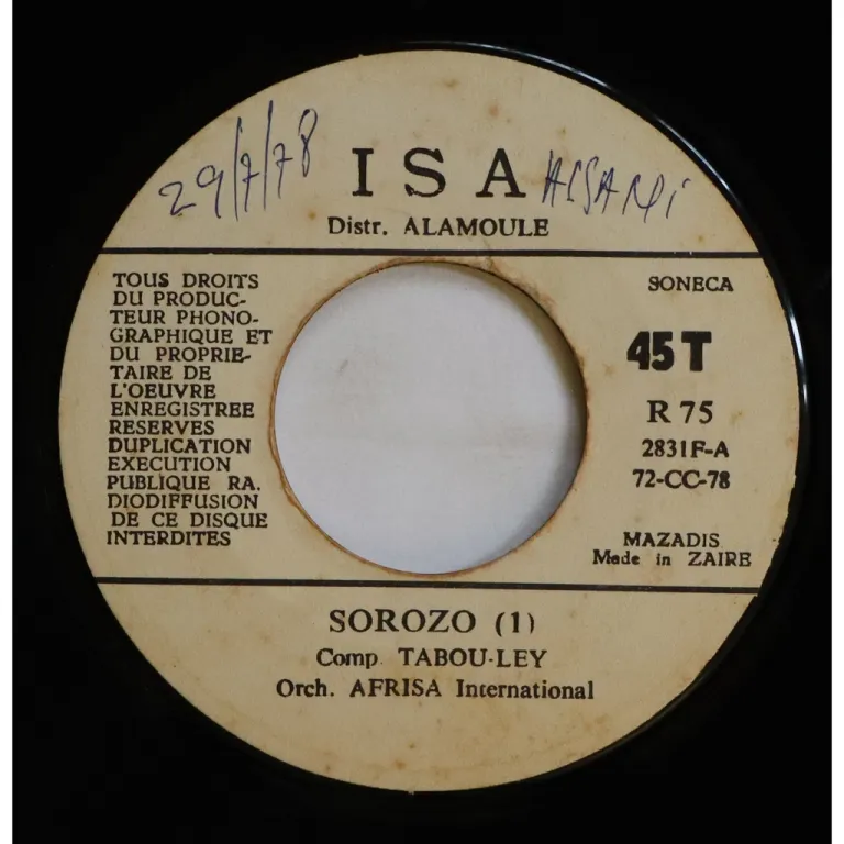 Consistent single only soukous mid tempo winner by one of Congo's leading orchestras. Writings on cover & labels, bites on mouth & seam, dirt & aging, record has constant reasonable to light noise